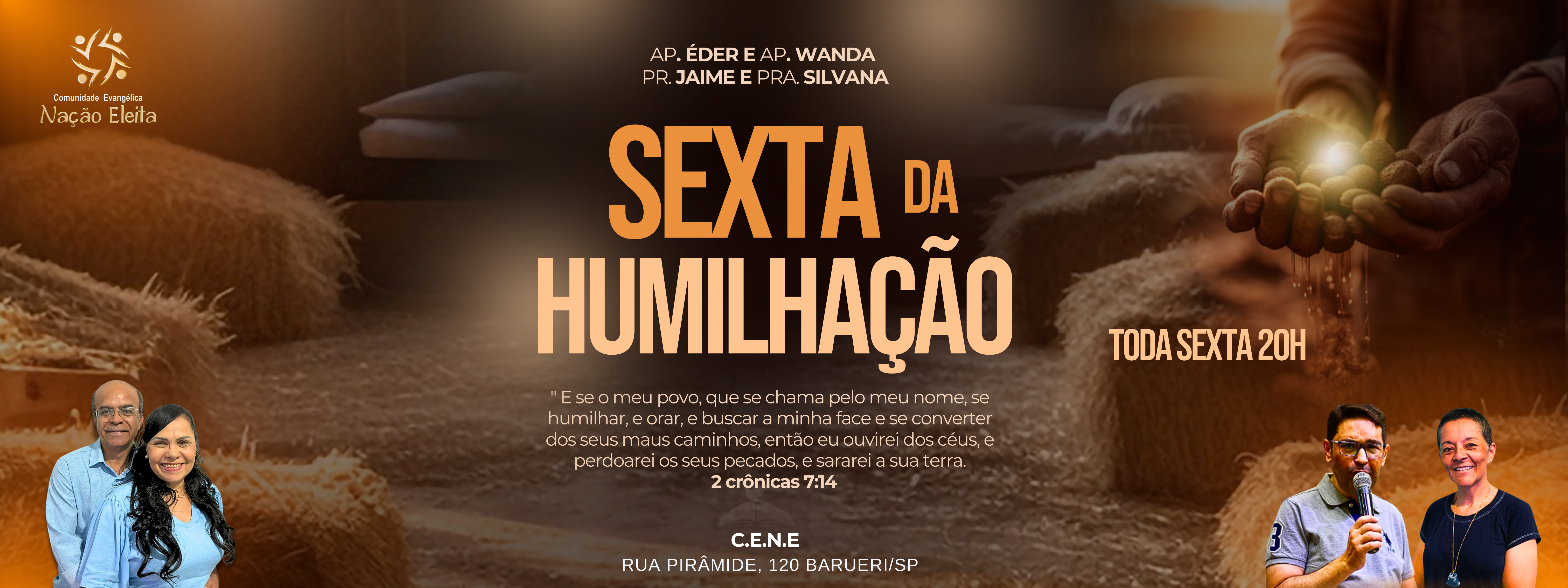 Comunidade Evangélica Nação Eleita, assim denominada pela nossa liderança Apóstolos Eder e Wanda, hoje com 12 Anos de criação.